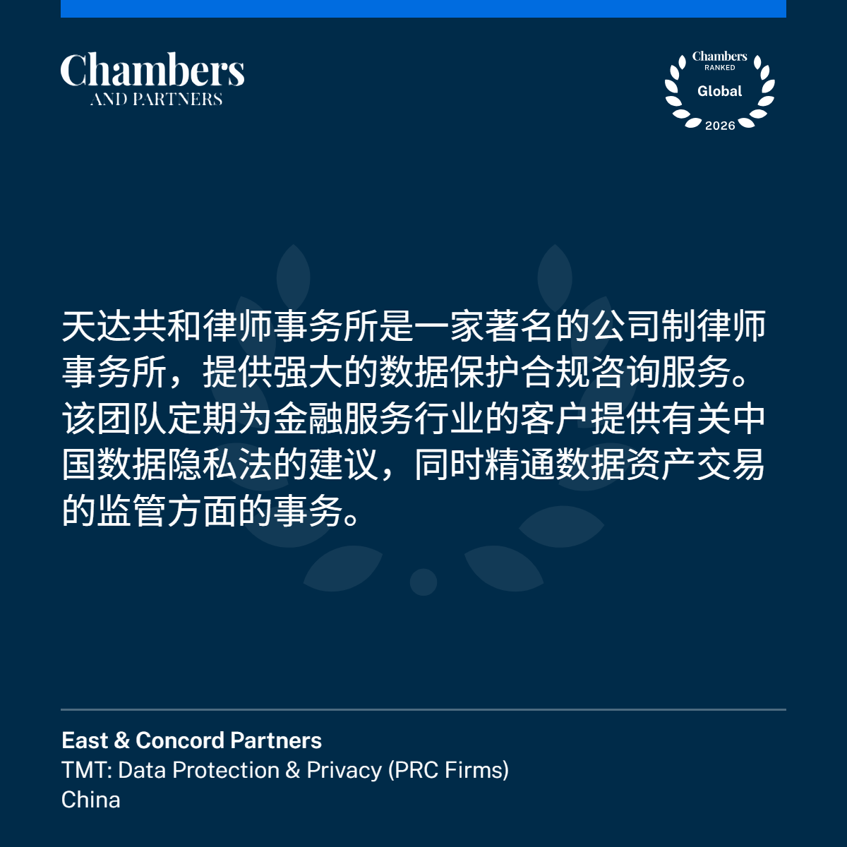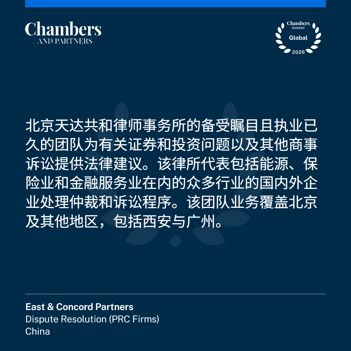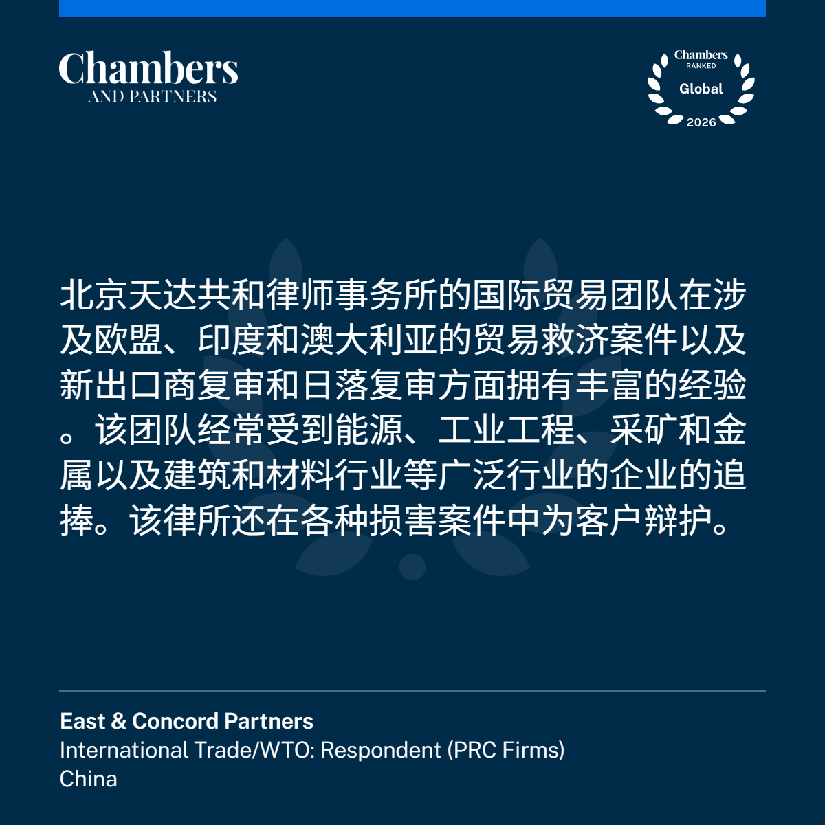 2月12日,国际权威法律评级机构钱伯斯(Chambers and Partners)公布《钱伯斯全球指南2026》(Chambers Global Guide 2026),凭借卓越的法律服务业务能力,天达共和律师事务所5个业务领域,9人次荣登榜单,上榜数量较去年有较大提升。天达共和管委会主任周琦律师荣获“业界元老”称号。
